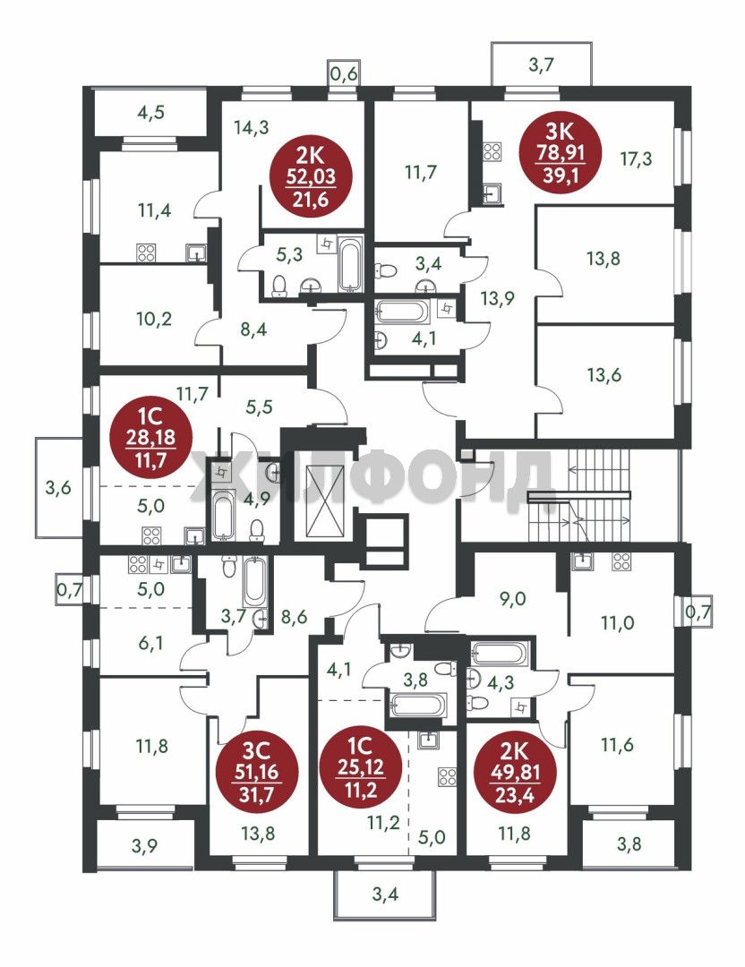 Жилая площадь, м2 12 489