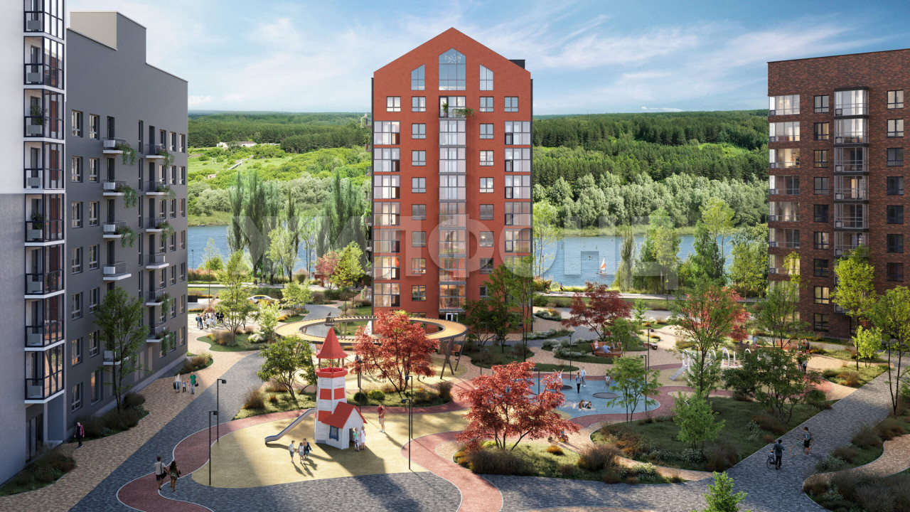Четыре урбан-виллы со скатными кровлями на первой береговой линии — яркие акценты и визитная карточка всего ЖК. Дома создают ощущение загородной жизни и своими мотивами отсылают к скандинавской архитектуре.